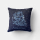 Jetez l'oreiller avec le symbole zodiaque d'Aquarius en bleu argenté doux, recouvert des étoiles de la constellation, contre un arrière - plan étoilé du bleu profond de minuit au noir.