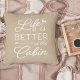 L'oreiller rustique moderne à jetons est orné d'un arrière - plan beige clair et d'un habillage de typographie blanche, "la vie est meilleure au cabine". Personnalisez l'envers avec votre nom de famille et l'année établie.