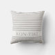 Élégant décor de terrasse extérieure rayures de Taupe. Coussin à rayures de Taupe nautique intemporel avec nom de bateau ou modèle de nom de plage pour les coins salons extérieurs. Emplacement du nom du bateau des deux côtés. Les coussins personnalisés de nom de bateau sont également une excellente idée cadeau pour elle et lui, les plaisanciers et les marins. Vents doux et mers suivantes ! #ybeedesign #ybeesea #navybluepillows #boatnamepillows Porche et terrasse conçus avec amour pour l'océan © Design y.BEE SEA