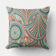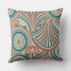 This nouveau style abstract design radiates movement in concentric circles and flowing lines in soft turquoise, coral, and cream tones.