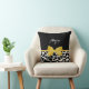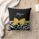 Une girafe noire et blanche à la mode lance l'oreiller avec un ruban jaune doré ceint d'un arc chic. Personnalisez ce design poster de animal élégant en ajoutant votre nom. Le côté inverse a un motif de girafe noir et blanc. Image imprimée plate, pas l'arc réel.