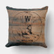 Coussin Texture en bois rustique et monogramme de cerfs su