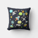 Un coussin avec un motif mignon et coloré avec toutes sortes d'éléments thématiques de l'espace. Les images comprennent des astronautes flottant dans leurs combinaisons spatiales blanches. Étoiles, planètes et petits navires-roquettes cool, vaisseaux spatiaux et satellites. Design amusant et fou.