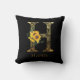 Magnifique monogramme de couple/famille avec une touche dramatique avec la lettre H décorée d'or avec un joli bouquet de tournesols à l'aquarelle, texte moderne doré personnalisable sur fond noir