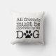 Coussin amusant avec "Tous les amis doivent être approuvés par le chien amusant animal de compagnie" en noir sur le devant et empreinte de patte amusant retour.