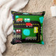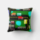 Cet oreiller de lancer a une conception géométrique des camions et des voitures sur une route et dans un parking.