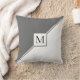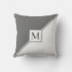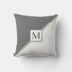 Lance l'oreiller géométrique gris moderne avec monogramme. Il comprend deux bandes diagonales une grise et une blanche qui divisent le coussin en deux triangles. Un carré blanc est au centre avec votre monogramme.