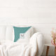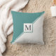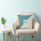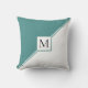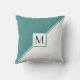 Lancer turquoise oreiller avec monogramme. Il comprend deux bandes diagonales une turquoise bleue et une blanche qui séparent la carte en deux triangles. Un carré blanc est au centre avec votre monogramme.