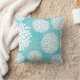 Coussin turquoise blanc à motifs floraux