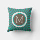 Coussin Turquoise Bleu et Brown rayures Motif Monogramme