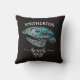 Le décorateur de la maison de plage jette un oreiller avec une tortue turquoise sur un arrière - plan noir. Personnalisé avec votre nom de famille et votre date d'établissement. Contactez-moi pour obtenir de l'aide sur la personnalisation ou pour demander l'appariement ou la coordination des produits Zazzle.