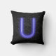 U initial en marquee lumineux néon violet marquee sur mur de brique de ville urbaine. Contactez-moi pour le changement initial de lettre.