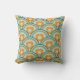 Coussin Vagues et fleurs rétro Aqua, Turquoise, Orange