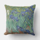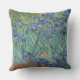 Ce beau coussin est inspiré par les Irises peints par Vincent van Gogh en 1889. L'image est ornée d'iris bleus aux tiges vertes et de feuilles aux pointes pointues plantées dans la terre brune-rouge.