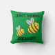 Ne vous inquiétez pas. Soyez heureux. Ce jeu de mots est écrit dans des chapiteaux de style en détresse sur un carré vert vif jeter l'oreiller, et décoré avec deux dessins animés, très mignonnes, les abeilles bébés. Les abeilles sont principalement jaune vif et le texte est noir. Le design est des deux côtés du coussin / coussin.