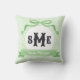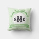 Coussin Vert menthe, motif à clé grecque inversé avec mono