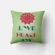 Coussin Vert moderne et rouge Amour, Paix, Joie citation
