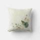 Magnifique coussin romantique avec des fleurs vert sauge et blanches et quelques jolies feuilles .