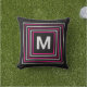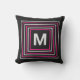Cet abstrait moderne gris foncé à l'extérieur de lancer oreiller a un monogramme personnalisable afin que vous puissiez facilement ajouter votre famille initiale et personnaliser votre espace de vie extérieur. Des carrés vifs rose et gris pâle ajoutent une touche de couleur énergétique pour soulever un coin salon sombre.