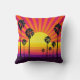 Coussin Vibrant Retro Sunset Palm Tree Throw Pillow on Whi