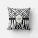 Motif damassé noir et blanc classique et classe avec imprimé zèbre rayé. Le design graphique comporte une plaque de style rétro avec lettre initiale monogramme et prénom. Un cadeau chic et élégant pour filles et femmes.