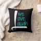 Carreau mignon, rire vivant d'amour, blanc et lettres d'Aqua sur le coussin noir