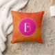 Personnalisez avec votre premier monogramme sur un cercle rose monogramme avec une bordure blanche fantaisie. L'arrière - plan est un mélange tourbillonnant de teintes orangées qui se mélangent et se mélangent pour créer un motif abstrait moderne audacieux et dynamique.