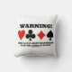 Si vous avez une relation d'amour-haine avec le jeu de pont, vous profiterez de ce pont tordu / pont dupliqué dire lancer oreiller avec les quatre costumes de carte. Vient avec le truisme disant qui fera aux autres faire une double prise à la table de pont : "Attention! J'Ai Une Relation Amour-Haine Avec Le Jeu De Bridge". Jetez un oreiller mémorable pour quiconque a gagné et perdu des stries en jouant pont/pont dupliqué!