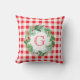 Coussin Watercolor Pine Wreath MONOGRAM Red Check