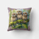 Coussin Whimsical Three Owens in Forest - Nature Art