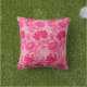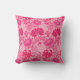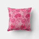 Coussin extérieur dans un William Morris vintage, Art Nouveau, imprimé floral de chrysanthèmes stylisés, numériquement rehaussé et coloré, dans les tons rose fuchsia profond, rose azalée et bordeaux, sur un arrière - plan rose pâle