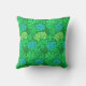 Coussin extérieur dans un William Morris vintage, Art Nouveau, imprimé floral de chrysanthèmes stylisés, numériquement rehaussé et coloré, dans vert citron clair et profond et aqua, sur un arrière - plan vert émeraude