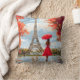 Une femme gracieuse avec un parapluie rouge se promène vers la Tour Eiffel dans une douce brise automnale. Charme parisien romantique dans les tons rouge et or.