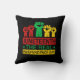 Justice sociale et histoire noire mot art jeter oreiller caractéristiques poings élevés avec "Junetten - le Jour de l'Indépendance Réel" texte en Pan Afrique couleurs combo sur arrière - plan noir