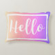 Coussin de dégradé d'arc-en-ciel pastel et script Hello.