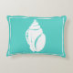 Silhouette de coquillage blanc côtier moderne et coussin accent vert mer. Un décor côtier minimaliste avec cet oreiller en coquillages blancs.