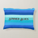 Le blues d'été frais, une palette de couleurs empruntée à l'océan et ajouté à un coussin accent. D'un côté les rayures sont horizontales, de l'autre elles sont verticales. À l'avant comme à l'arrière avec un simple exemple de texte qui dit "Summer Blues". Conservez-le ou customisez-le avec un nom ou un autre texte de votre choix.