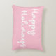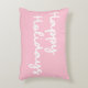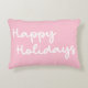 Ce coussin d'accent mignon a simplement l'expression Happy Holidays dans un script fantaisiste lettre cursive sur un arrière - plan rose.