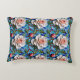 Superbe oreiller à lancer avec un étonnant motif floral bleu et rose imitation mosaïque, avec des carreaux bleu, rose et rouge vibrants, avec des roses de couleur corail entrelacés avec feuillage vert. Le design complexe imite l'apparence d'un vitrail et de mosaïques en céramique, créant une esthétique élégante et intemporelle.