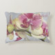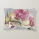 Belles orchidées en rose et crème avec vert et gris. Personnalisez le texte en fonction de votre style de décoration, ou le texte est également amovible sur ce coussin à fleurs de concepteur.