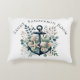 Coussin blanc Ancrage nautique avec étoiles de mer, coquillages et fleurs, arrière - plan blanc. Personnalisé avec un nom. Idéal pour une maison de plage, une chambre sur le thème de l'océan et un décor de maison de bord de mer.