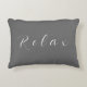 RELAX Cotton Accent Coussin Created by Inky_Art Disponible dans différentes tailles, styles Peut changer la couleur arrière - plan, la police, la couleur de police Fabric : Grade A Cotton Faites une déclaration sans avoir à dire un mot quand vous accentue votre maison avec des coussins entièrement personnalisables. 100 % coton grade A, ces coussins doux peuvent être personnalisés avec vos designs, textes, monogrammes et photos. Un complément idéal pour votre salon, chambre ou même votre entrée, ces coussins rendront vos invités jaloux. Dimensions : 12" x 16" 100% Grade-A Coton Toutes les fibres naturelles sont respirables et douces au toucher Le tissu haute résistance à la traction fait pour une fermeture à fermeture à glissière cachée de longue qualité; insert synthétique sont hypoallergéniques et remplis d'une fibre de polyester faux-dut Nettoyage sec ou direct seulement Fabriqué aux États-Unis