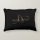 Coussin d'Accent Monogrammé moderne Black Gold Feminine Script. Personnalisez facilement ce coussin d'accent élégant moderne avec votre monogramme et votre nom personnalisés.
