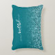 Faux brillant turquoise parties scintillant ombragé sur un revêtement bleu turquoise. Vous pouvez customiser la couleur arrière - plan de couleur solide. Ajoutez un monogramme derrière le nom donné pour créer votre propre monogrammed personnalisé. Le texte personnalisé est composé d'une police de style manuscrit moderne avec des pointes de courbure. Choisissez votre propre couleur personnalisée pour la police. Retirez les écouvillons et ajoutez une majuscule si vous le souhaitez. Déplacez le nom vers une autre position sur son coussin d'accent rectangle.