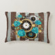 Coussins Décoratifs Steampunk Clock and Turquoise Roses on Striped