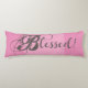 "Béni !" Un design audacieux et amusant qui annonce votre état de bien-être et reconnaît qu'il est Source. Ce magnifique coussin de 20" x 54" comprend un insert de coussin en fibre de polyester hypoallergénique. Bénéficiez d'une surface extérieure douce et sans rides, ainsi que d'une résistance au fondu et au rétrécissement. Personnalisable et fabriqué en Amérique. Disponible dans : Gris | Bleu | Rose | Tan ou rouge