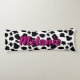 Black and white cow spots personalized Body Pillow. Fun animal print design with custom name. Long cushion for bedroom.