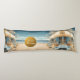 Unique, artistique, de grande valeur, bleu, sable et or esthétique, double face, coussin de corps à thème côtier, avec un bar de plage une belle dame blonde sur le devant, et de l'illustration de bar côtier sur le dos, avec un éclat d'or avec texte personnalisé. Modifiez facilement le texte par défaut en cliquant sur le bouton Personnaliser et obtenez-le pour vous-même, votre entreprise ou pour vos proches. #piccogrande #bleu #coussin #chambre #dorsache #grossesse