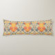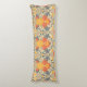 Ce coussin du corps présente des fleurs et des feuilles dans les tons jaune, orange et gris-bleu sur un arrière - plan crème.