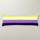 Les personnes non binaires peuvent s'identifier comme ayant au moins deux sexes; sans sexe; le passage d'un sexe à l'autre ou la fluctuation de l'identité de genre; ou être un troisième sexe ou un autre sexe, une catégorie qui comprend ceux qui ne portent pas de nom à leur sexe. Chaque couleur de bande représente différents types d'identités non binaires: Jaune pour les personnes qui s'identifient en dehors du binaire de genre, blanc pour les personnes non binaires avec des sexes multiples, violet pour celles avec un mélange de sexe masculin et féminin, et noir pour les personnes de sexe masculin.